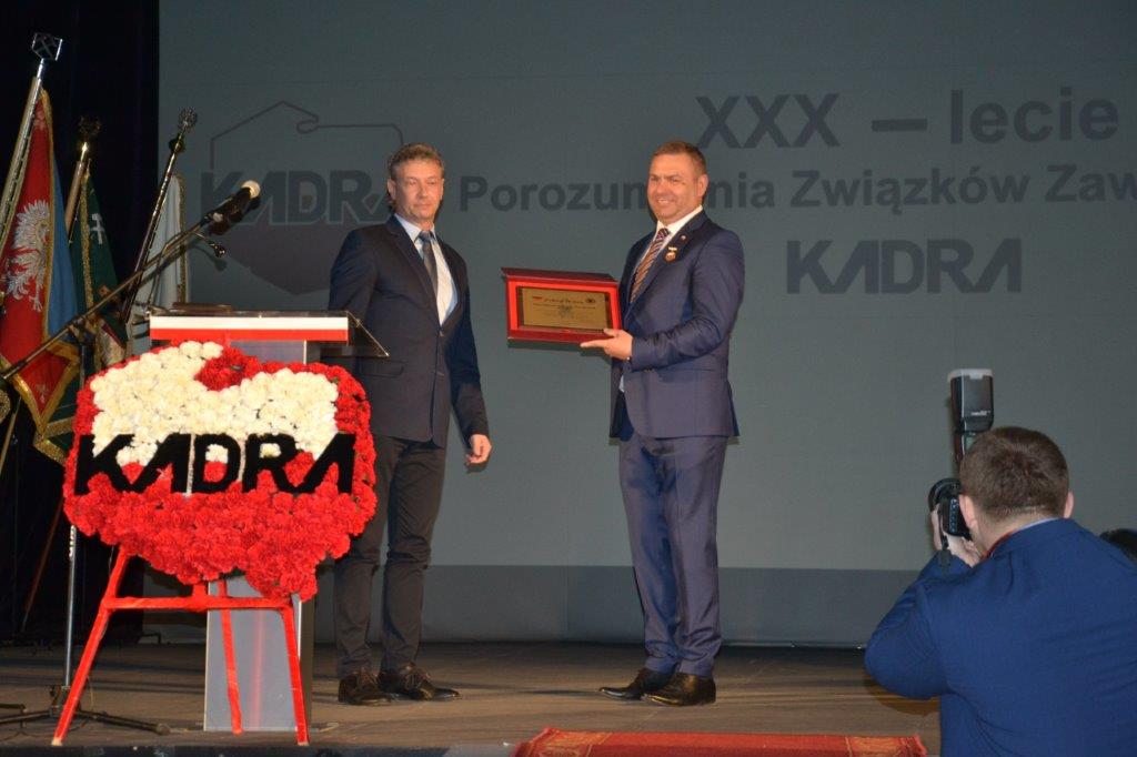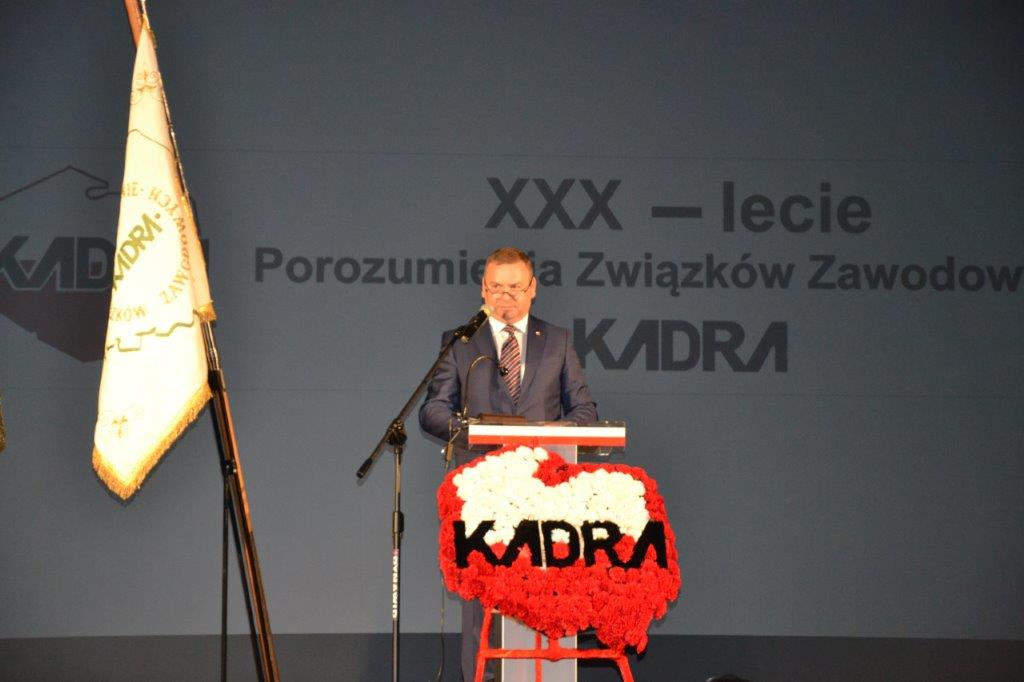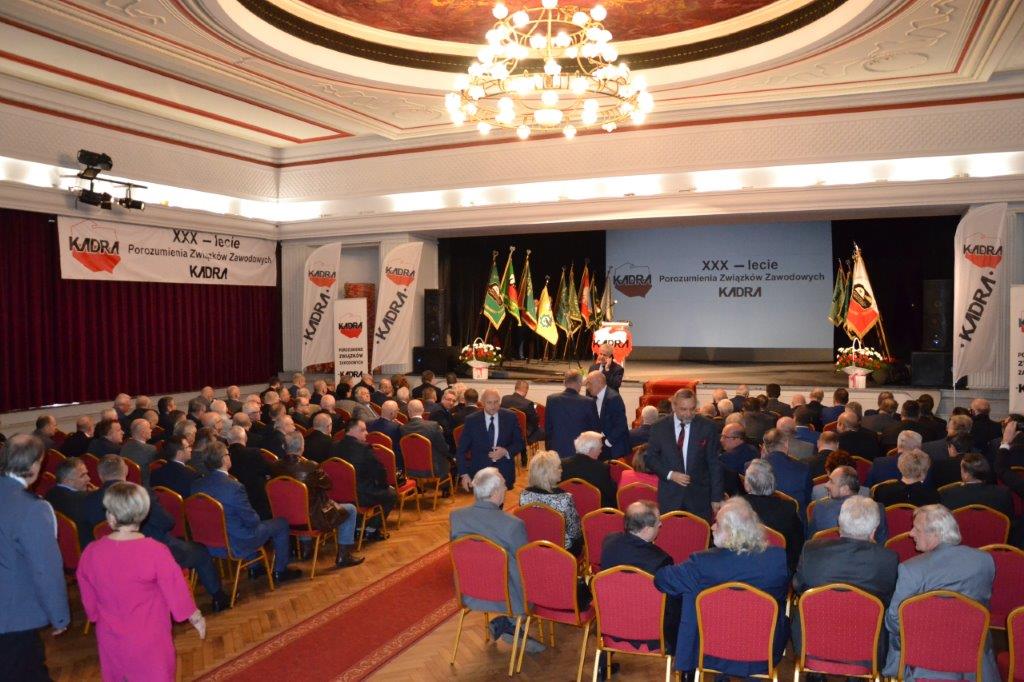 Porozumienie Związków Zawodowych „KADRA” w dniu 11 kwietnia 2019 roku świętowało 30 lat swojego istnienia. Przewodniczący Dariusz Trzcionka otworzył uroczystości Akademii Jubileuszowej w Centrum Kultury Śląskiej w Świętochłowicach.