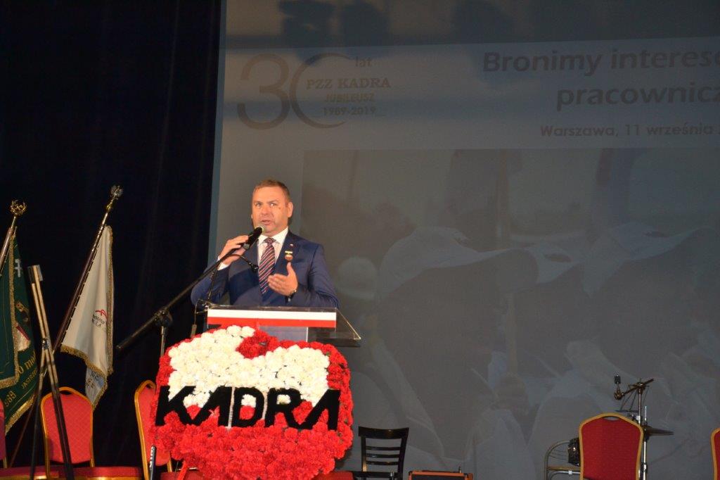 Przewodniczący wskazał na nowe wyzwania w działalności Porozumienia Związków Zawodowych „KADRA” i zwrócił się zebranych i zasłużonych działaczy, że przez ostatnie 30 lat byliśmy Razem, to były 3 Dekady działalności, gdy tak niewielu w obronie tak wielu pracowników działało z pasją i poświęceniem!