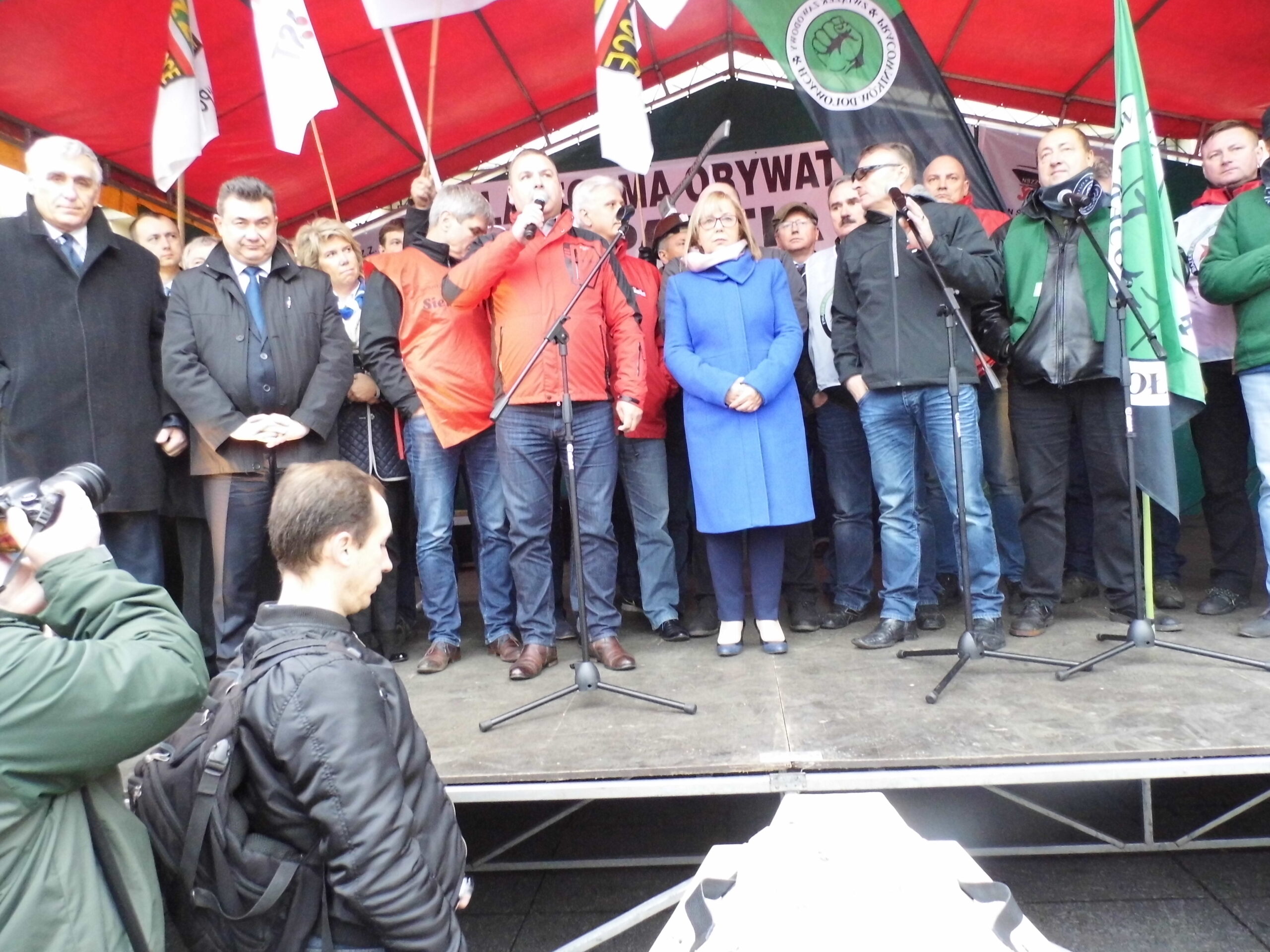 Do manifestujących dzisiaj pracowników wyszli przedstawiciele władz samorządowych i politycy. Pracownicy nie są dziś zadowoleni ze stanu realizacji Porozumienia z dnia 17 stycznia 2015 roku zawartego między związkami zawodowymi a rządem RP. To porozumienie przewidywało stworzenie nowej kompanii węglowej w oparciu o finansowanie ze strony spółek energetycznych i do końca września było głównym punktem programu restrukturyzacyjnego. W czasie protestu do zgromadzonych przemawiali liderzy związków zawodowych, w tym również Przewodniczący Dariusz Trzcionka.