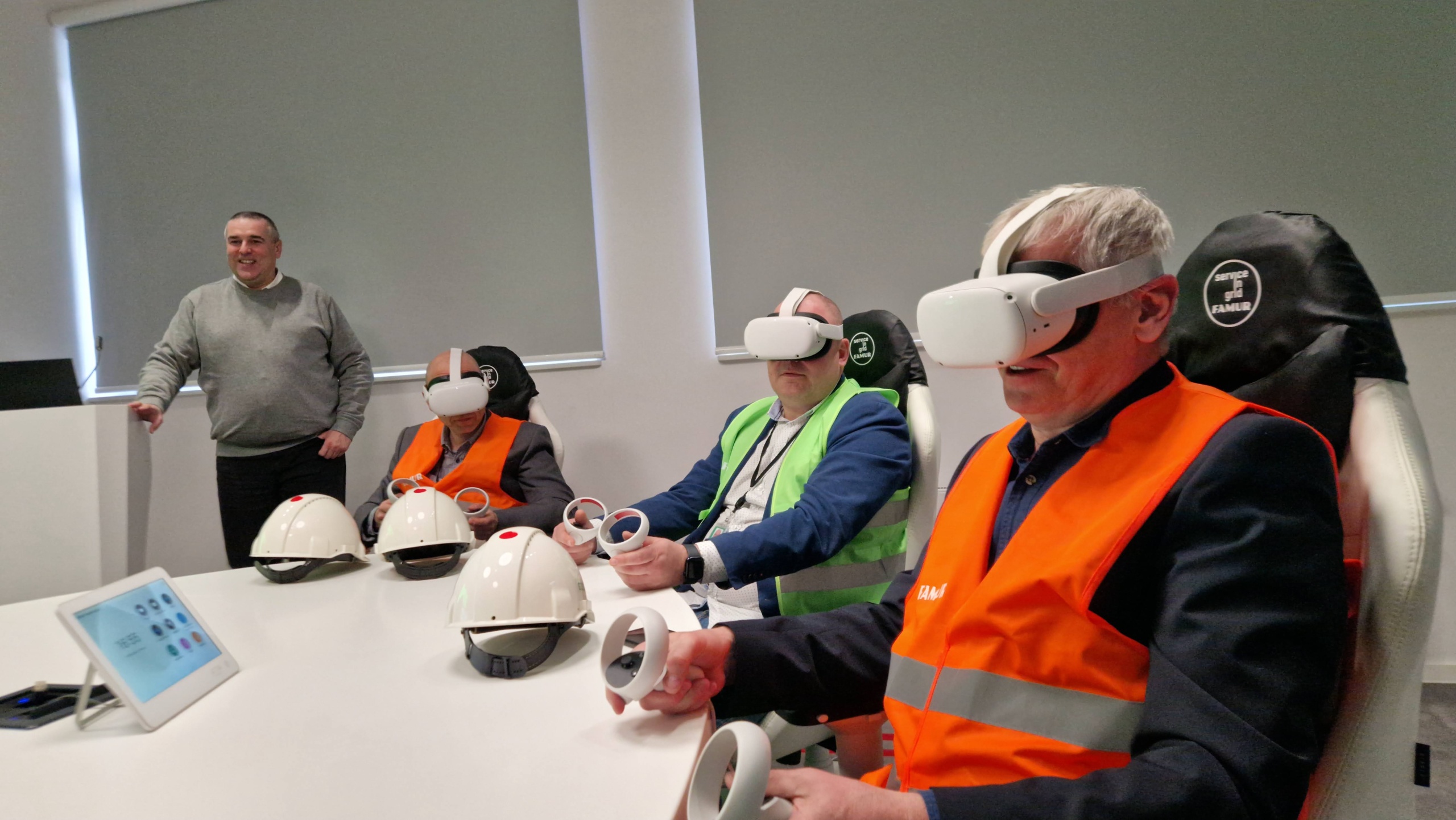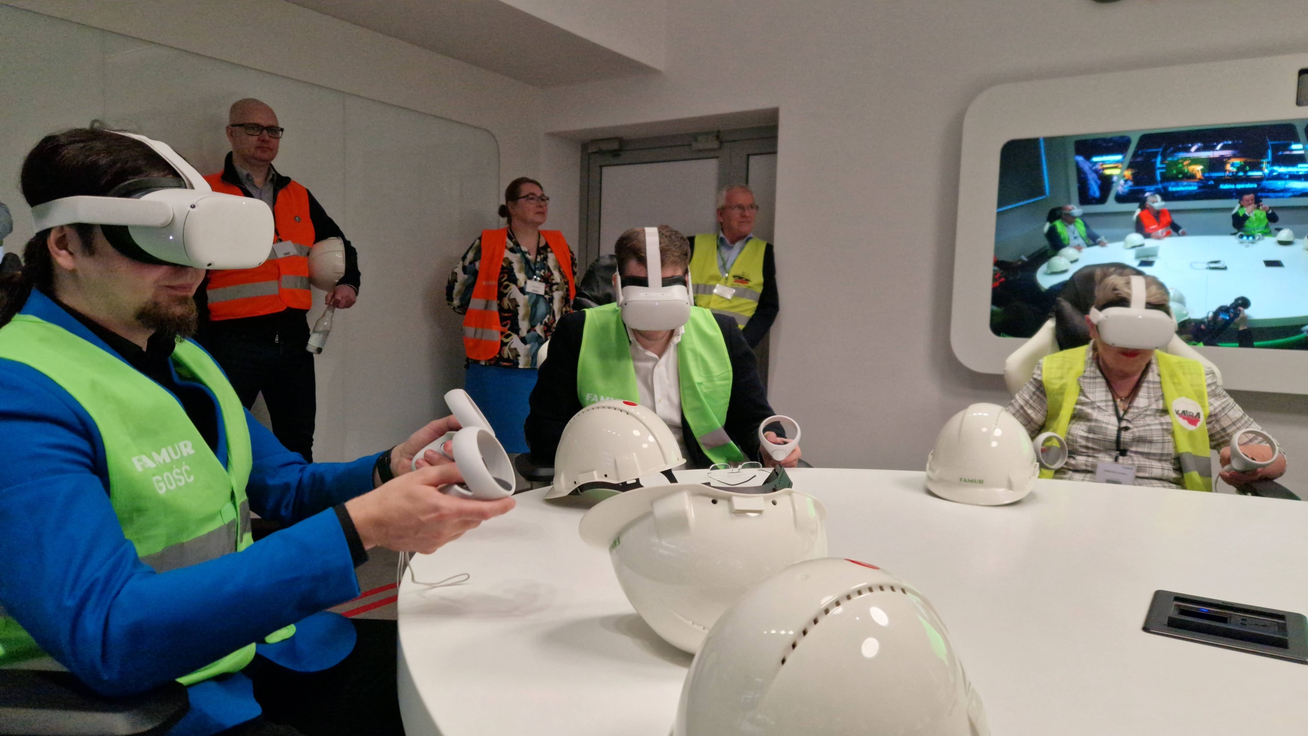 W związku z tym spotkaniem zaprezentowano działalność firmy Famur Gearo na obszarze działalności produkcyjnej i usługowej prowadzonej na terenie zakładu w Katowicach, w tym na sali SIGMA korzystającej z wirtualnej rzeczywistości w pracach firmy: