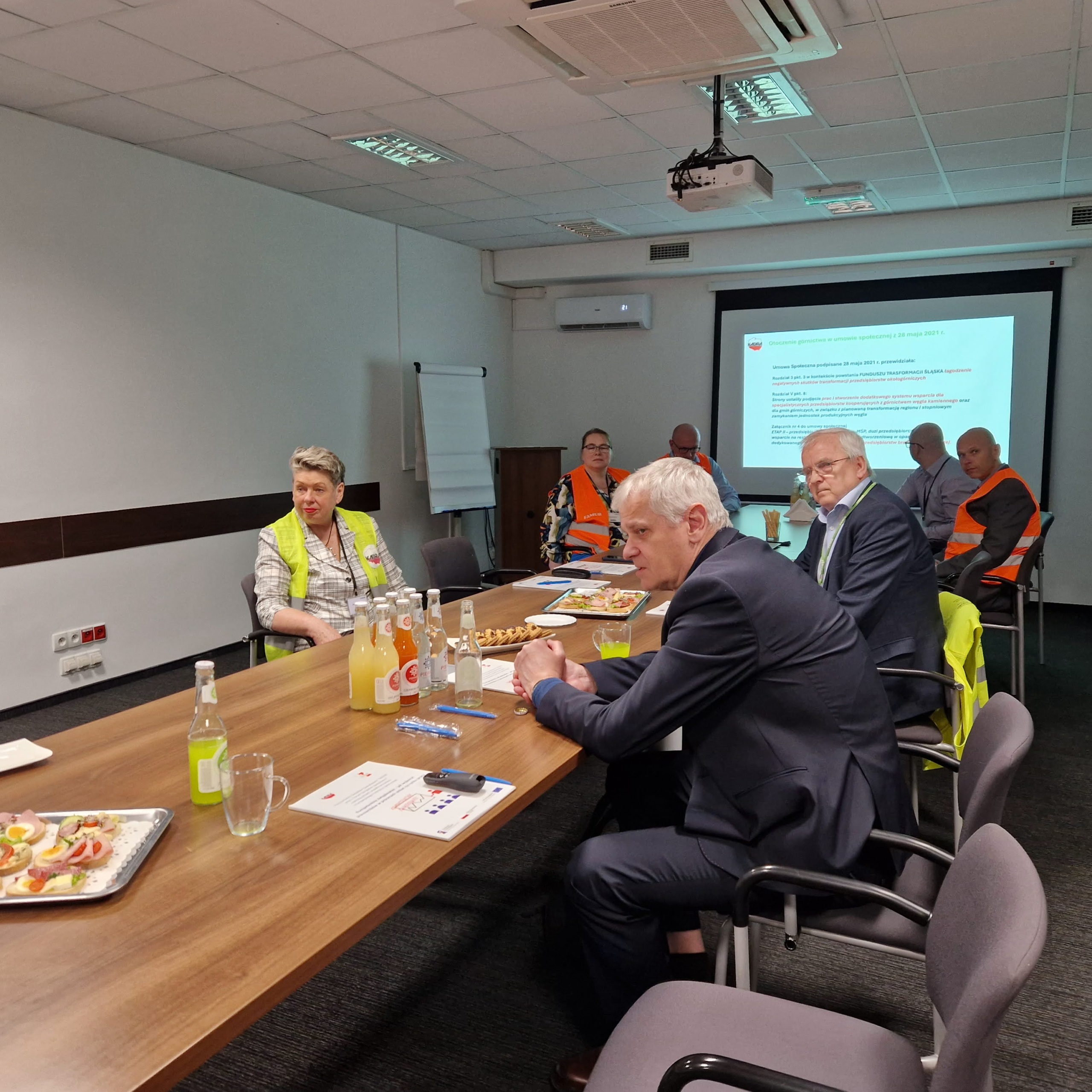 W czasie spotkania Przewodnicząca Joanna Kwiecień skupiła się na prezentacji sytuacji w sektorze otoczenia zakładów górniczych i na procesach transformacyjnych w firmach okołogórniczych – szeroki kontekst i zasięg oddziaływania transformacji m.in. na pracowników firm i mieszkańców. Prezentacja skupiła się na rosnącym znaczeniu rozwoju instalacji wiatrowych w Polsce, sposobie prowadzenia dialogu społecznego na przykładzie w firmie Famur, dotychczasowych działaniach związku zawodowego na obszarze sprawiedliwej transformacji. W czasie spotkania zatrzymano się również na wnioskach dotyczących wsparcia firm z otoczenia górnictwa zgodnie z zapisami umowy społecznej z 28 maja 2021 r.