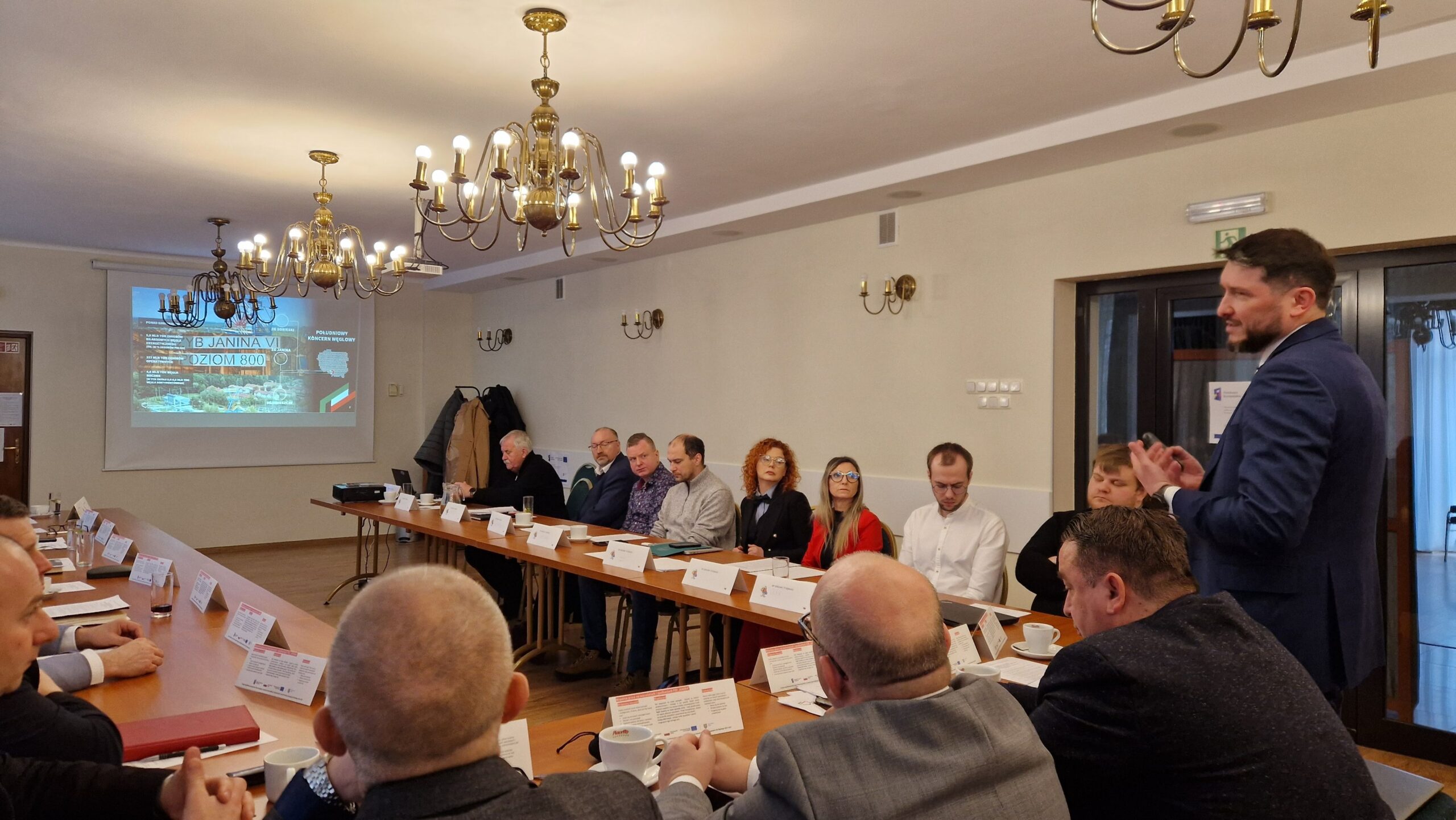 Przewodniczący Marcin Machura przedstawił lokalne wyzwania i omówił sytuację sektora górniczego w podregionie sosnowieckim w okresie transformacji na przykładzie ZG Sobieski. Przewodniczący skupił się na roli inwestycji w rozwój produkcji z poszanowaniem zasobów wód z wyrobisk podziemnych kopalń, roli odwadniania w układzie na przykładzie ZG Sobieski. Przewodniczący omówił również plany działalności górniczych firm na powierzchni, m.in. rozbudowy linii energetycznych, budowy farm fotowoltaicznych i oczyszczalni ścieków sanitarnych. W kontekście transformacji przedstawił doświadczenia z likwidacji istniejących wcześniej w regionie kopalń węgla. Warsztat zakończyła dyskusja przedstawicieli związków zawodowych i lokalnych samorządowców: Janusza Ciołczyka – Wiceprzewodniczący Rady Miasta i Pawła Bańkowskiego – radnego Sejmiku Województwa Śląskiego.